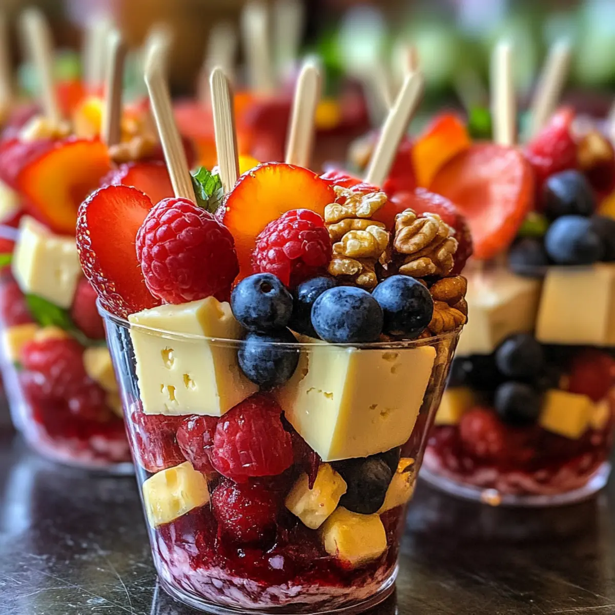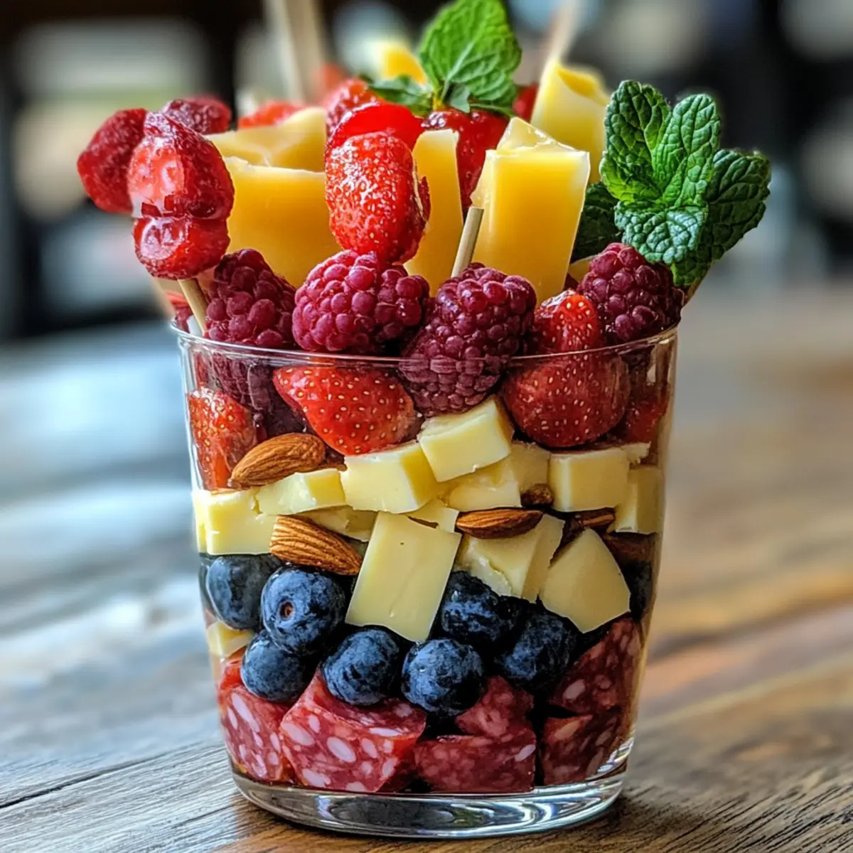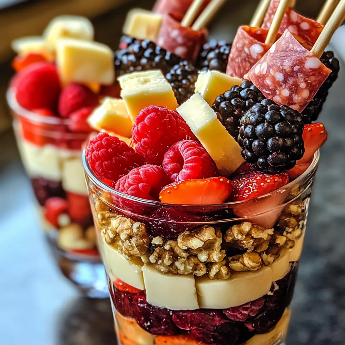 While I was arranging the cheese and fruit in these charming little cups, the aroma of savory salami combined with the creaminess of brie took me back to the delightful picnics of my childhood. These Valentine’s Day Charcuterie Cups are not only visually stunning, but they are also the perfect make-ahead appetizer for your celebration, allowing you to spend more time enjoying the company of friends and loved ones. Each cup is thoughtfully filled with a colorful assortment of meats, cheeses, and fresh fruits that invite mingling and grazing. Plus, they cater to every palate, making them a crowd-pleaser for both Valentine’s Day romantic dinners and lively Galentine’s gatherings. Ready to impress your guests with these elegant delights? Let’s dive in! Why are Charcuterie Cups perfect for Valentine’s Day? Versatile and Customizable: You can easily adapt these cups to suit any taste, swapping traditional meats for vegetables or experimenting with different cheeses. Effortless Entertaining: Prep these cups in advance, giving you more time to enjoy with your guests—perfect for a stress-free celebration! Eye-Catching Presentation: Each cup is a work of art, showcasing vibrant colors and textures that will wow your guests. Crowd-Pleasing Appeal: From savory salami to sweet macarons, there’s something for everyone in these delightful combinations. Easy to Serve: With individual portions, your guests can mingle easily without the mess of traditional charcuterie boards! If you love fresh flavors combined with elegance, these Cheesecake Cookie Cups or Cranberry Orange Holiday will also be fantastic additions to your menu! Valentine’s Day Charcuterie Cups Ingredients For the Meats Hard Italian Salami – Provides a rich, savory flavor; substitute with prosciutto for a different taste. Salame di Parma – Adds a mild, delicate flavor; use regular salami for a stronger taste. For the Cheeses Mini Brie Bites – Creamy texture that pairs well with the meats; substitute with soft goat cheese if desired. Havarti Cheese – Smooth and mild; cut into heart shapes for visual appeal, or use cheddar as a firmer alternative. For the Add-Ins Mixed Nuts – Adds crunch and flavor variety; opt for a nut mix, but avoid if guests have nut allergies. Jordan Almonds – Sweet twist with added color; replace with chocolate-covered almonds for a different flair. Berries (Blackberries, Raspberries, Blueberries) – Brings freshness and acidity; swap for other seasonal fruits as desired. Heart Shaped Crackers – Provide a fun, crunchy aesthetic; use plain crackers if fancy ones aren’t available. For the Sweet Touches Heart Macarons – A delightful finishing treat; substitute with heart-shaped cookies if needed. Heart Shaped Candy – Decorative filler for visual appeal; use any small, colorful candy for a festive look. For the Garnish Rosemary Springs – Adds a fragrant herbal note; omit if not preferred, or use another herb like thyme. These Valentine’s Day Charcuterie Cups not only charm the eye but invite delightful bites that will surely make your celebration special! Enjoy creating these beautiful appetizers that are perfect for sharing and mingling! Step‑by‑Step Instructions for Valentine’s Day Charcuterie Cups Step 1: Prepare the Cups Begin by placing 1/2 cup of mixed nuts at the bottom of six individual paper cups, ensuring an even distribution. Next, divide the Jordan almonds among the cups, scattering them atop the nuts to create a colorful base. This charming foundation sets the stage for your beautiful Valentine’s Day Charcuterie Cups, inviting a delightful mix of textures and flavors. Step 2: Assemble Salami Skewers Lay out three slices of salami and gently overlap them, creating a lovely pattern. Roll the slices tightly into spirals, forming a fun skewer shape. Keep going until you have enough skewers for each cup—around three should do. This step adds a savory element, enhancing the overall appeal of your charcuterie cups with the richness of the salami. Step 3: Insert Skewers and Garnish Carefully insert the salami skewers into the center of each prepared cup. To add a touch of freshness, place a rosemary sprig beside the skewers within each cup for garnish. The greenery not only enhances the cups’ visual appeal but also subtly elevates the flavor profile, inviting your guests to indulge in the festive charm of your Valentine’s Day Charcuterie Cups. Step 4: Add Cheese and Crackers Next, include one mini Brie bite and a heart-shaped piece of Havarti cheese in each cup, arranging them aesthetically around the skewers. Complement the cheeses with heart-shaped crackers, tucking them beside the cheese to create a pleasing and balanced look. The combination of creamy textures and crunch will make your charcuterie cups irresistibly delightful. Step 5: Finish with Sweet Touches To complete your Valentine’s Day Charcuterie Cups, place a heart macaron at the front of each assembly. These sweet treats will add a whimsical finish, complementing the savory elements beautifully. Sprinkle some heart-shaped candy around the cup edges for a splash of color and festivity, making your cups not just delicious but also visually stunning for your celebration. How to Store and Freeze Valentine’s Day Charcuterie Cups Refrigerator: Keep assembled cups covered in the fridge for up to 4 hours before serving to maintain freshness and flavor. Freezer: It’s best not to freeze these cups, as the fresh ingredients, especially berries and cheeses, may lose their texture and taste. Airtight Storage: If you have leftover components, store meats, cheeses, and nuts separately in airtight containers in the fridge for up to 3 days to preserve their quality. Serving Tips: When ready to serve, simply assemble any pre-chilled ingredients and enjoy the delightful flavors of your Valentine’s Day Charcuterie Cups without hassle! Make Ahead Options These Valentine’s Day Charcuterie Cups are an ideal choice