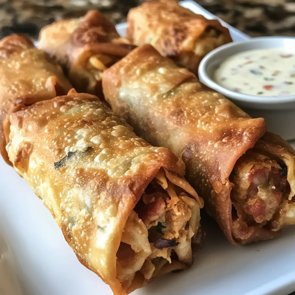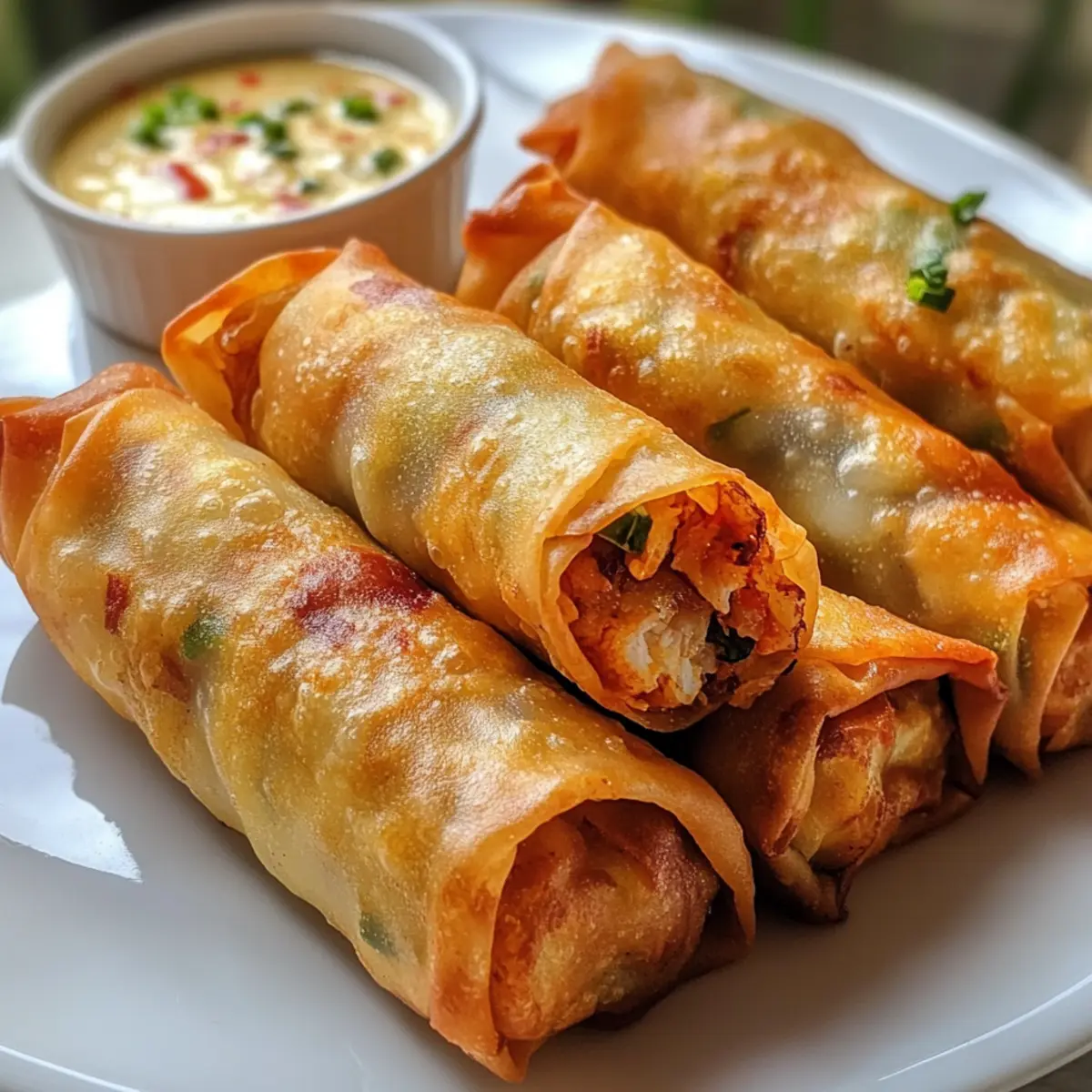 As I stepped into my kitchen, the smell of Cajun spices wafted through the air, instantly igniting a sense of excitement. That’s when I decided it was time to whip up a batch of Voodoo Egg Rolls. These delightful wraps are a perfect fusion of Cajun and Creole flavors wrapped in a golden, crispy exterior. Not only are they a showstopper at any party, but they’re also wonderfully freezer-friendly, letting you make a stash for future cravings. With ingredients packed with bold, zesty undertones and a crunch that dances on the palate, they’re an irresistible treat for anyone tired of fast food. Curious about how to create this spicy sensation in your kitchen? Let’s roll! Why Are Voodoo Egg Rolls So Irresistible? Bold Flavor: Each bite is a flavor explosion, combining the rich essence of Cajun spices with the heartiness of seafood and sausage. Crispy Delight: The golden exterior provides a satisfying crunch that makes these egg rolls a crowd favorite. Versatile Variations: Whether you want Crawfish Étouffée Egg Rolls or a vegetarian twist, this recipe’s flexibility ensures everyone is happy at the table! Make-Ahead Magic: These rolls are not just tasty but also freezer-friendly, allowing for easy meal prep and last-minute snacking options. Perfect Party Food: Elevate your gathering with these delicious appetizers that will keep guests coming back for more! Voodoo Egg Rolls Ingredients For the Filling • Crawfish Tails or Shrimp – Adds a delightful seafood flavor; substitute with lump crab meat or omit for a vegetarian option. • Andouille Sausage – Delivers a smoky and spicy kick; you can use chorizo or spicy kielbasa instead. • Shredded Cheddar Cheese – Provides melty richness; feel free to use a cheese blend for extra flavor. • Red Bell Pepper – Adds color, crunch, and mild sweetness; green peppers work just as well for a different taste. • Red Onion – Offers sharpness and aromatic notes; yellow onion can replace it if needed. • Cooked Rice – Acts as a binder to hold the filling together; any variety of cooked rice will do. • Cajun Seasoning – Infuses the filling with that characteristic spicy kick; use a store-bought blend or your homemade mix featuring paprika and garlic. • Chopped Parsley – Brings freshness and color to the dish; you can omit it if it’s not on hand. For Wrapping • Egg Roll Wrappers – Essential for creating your rolls; make sure they are square-shaped and thawed if frozen. For Frying • Vegetable Oil (for frying) – A high smoke point oil, like canola or peanut oil, is recommended for perfect frying. This ingredient list will guide you in preparing your very own Voodoo Egg Rolls, ensuring that every bite is bursting with flavor! Step‑by‑Step Instructions for Voodoo Egg Rolls Step 1: Prepare the Filling In a large bowl, combine the chopped crawfish tails or shrimp with diced andouille sausage, shredded cheddar cheese, diced red bell pepper, red onion, cooked rice, Cajun seasoning, and chopped parsley. Mix thoroughly until all ingredients are evenly distributed and the flavors meld. This flavorful filling will create the base of your Voodoo Egg Rolls, so make sure to adjust the seasoning to your taste. Step 2: Assemble the Egg Rolls Lay an egg roll wrapper in a diamond shape on a clean surface. Spoon 2–3 tablespoons of the filling into the center, then fold the bottom corner over the filling, bringing it to the top. Tuck in the sides and roll tightly to secure the filling inside. Use a bit of water to moisten the edges and seal the roll. Repeat this process until all filling and wrappers are used up. Step 3: Heat the Oil In a deep skillet or fryer, pour 2 inches of vegetable oil and heat it to 350°F (175°C). Use a cooking thermometer to ensure the temperature is precise, as this will help achieve a perfectly crispy exterior on your Voodoo Egg Rolls. Wait until the oil shimmers before proceeding to fry, which indicates it’s ready for cooking. Step 4: Fry the Egg Rolls Carefully place the assembled egg rolls into the hot oil in small batches. Fry each batch for 2–3 minutes, turning once, until they are golden brown and crispy on all sides. Keep an eye on them to prevent burning. Once done, remove the egg rolls from the oil and let them drain on paper towels to absorb any excess oil. Step 5: Serve Once your Voodoo Egg Rolls are crisp and golden, serve them warm with your favorite dipping sauces such as spicy ranch, cheese sauce, or Cajun remoulade. These delectable rolls make a fantastic appetizer or party snack that everyone will love. Enjoy the burst of Cajun flavors combined with that satisfying crunch! Expert Tips for Voodoo Egg Rolls Filling Consistency: Ensure your filling isn’t too wet, as excess moisture can cause the egg rolls to burst during frying. Cooked rice helps absorb moisture effectively. Oil Temperature: Maintain the oil temperature around 350°F for perfect frying. Too hot will burn the wrappers, while too low will leave them greasy and unappetizing. Sealing Technique: Dab the edges of the wrappers with water to help seal them securely. This prevents any filling from leaking during the frying process. Freezer-Friendly: For make-ahead convenience, freeze your uncooked Voodoo Egg Rolls on a baking sheet before transferring them to a zip-top bag. Fry them directly from frozen, adding a few extra minutes to the cooking time. Dipping Sauce Pairing: Enhance your Voodoo Egg Rolls with dipping sauces like spicy ranch or Cajun remoulade. This adds an extra layer of flavor that complements the Cajun spices beautifully. Voodoo Egg Rolls: Flavorful Twists Await! Feel free to mix and match ingredients to create your perfect version of this delightful dish! Crawfish Étouffée Egg Rolls: Use a roux-based filling with additional vegetables for a touch of classic Cajun flavor. It’s a rich twist that adds depth to every bite. Boudin Egg Rolls: Replace the filling with flavorful boudin sausage and some cheese. 