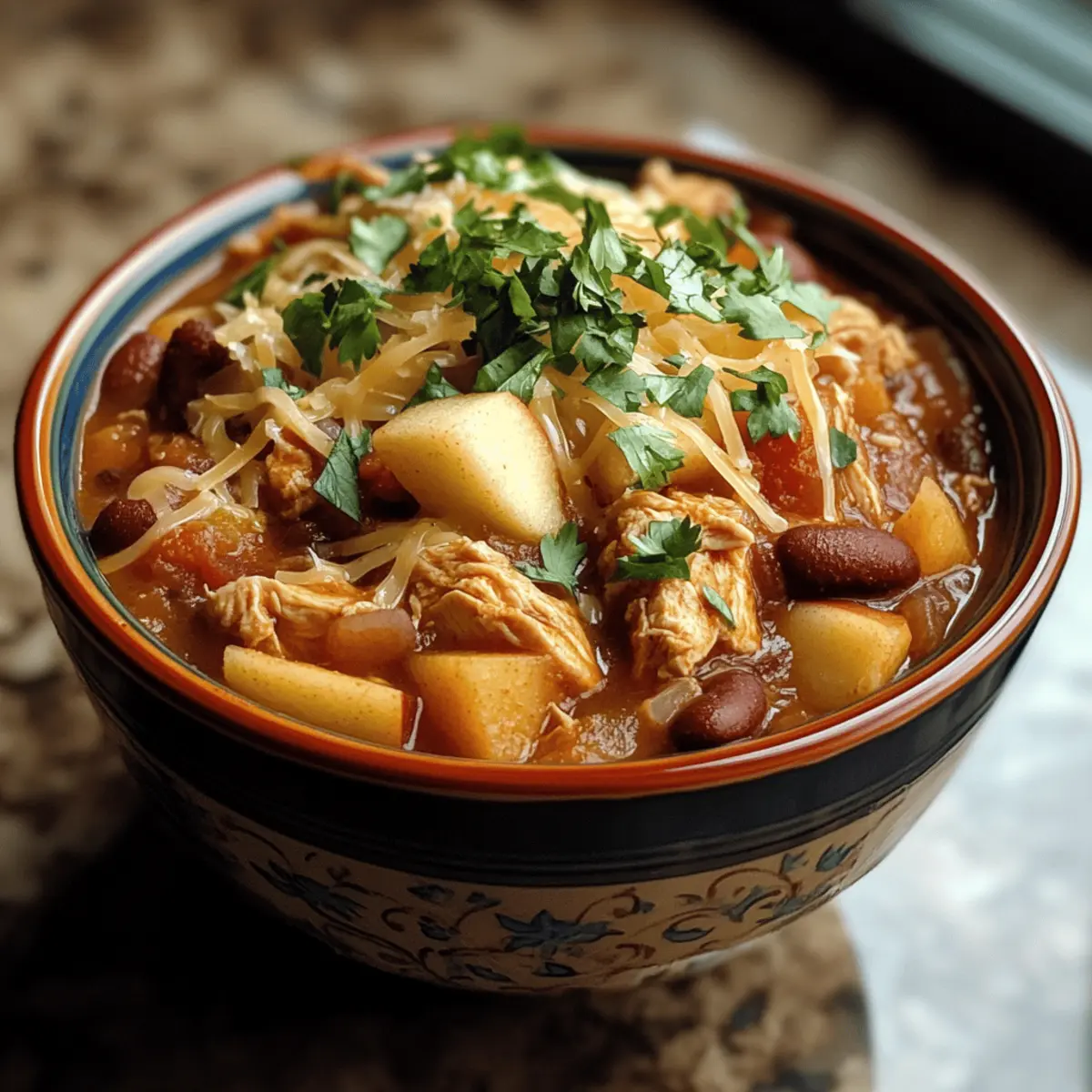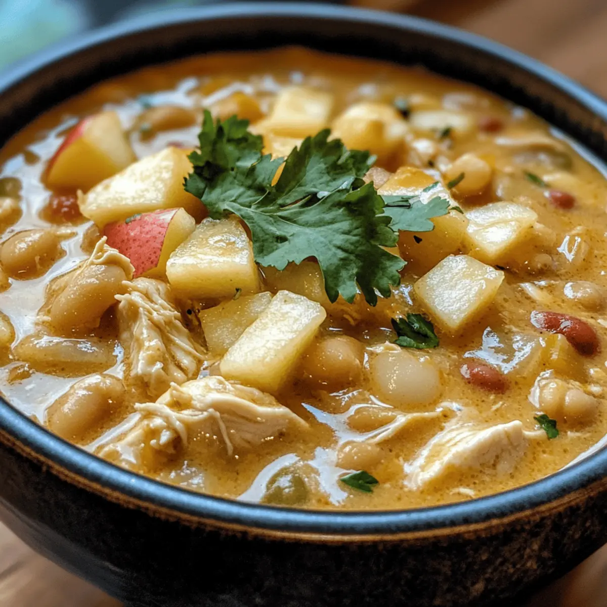 As the leaves change and a crispness fills the air, I find myself yearning for comforting bowls of warmth. Enter my latest obsession: White Cheddar Apple Chicken Chili. This delightful twist on traditional chili brings together the cozy flavors of sweet apples, tender rotisserie chicken, and creamy white cheddar, making it a stellar addition to your fall recipe lineup. One of the things I love most about this chili is how quickly it comes together—perfect for those busy weeknights when you crave something homemade but need to whip it up fast. Plus, the sweet and savory notes create a unique flavor profile that’s bound to impress even your toughest critics. Are you ready to discover the joys of this sumptuous bowl of chili? Let’s dive in! Why is this chili a must-try? Comforting, this White Cheddar Apple Chicken Chili wraps you in a warm hug with its creamy texture and heartwarming flavors. Quick to make, it’s a lifesaver for those busy weeknights when time is short, making it the perfect addition to your fall comfort food repertoire. Unique twist, the addition of sweet apples melds perfectly with savory spices, taking your traditional chili to the next level. Crowd-pleasing, it’s a dish that even picky eaters will love, and it’s versatile enough to suit various dietary preferences. Whether you serve it with crusty bread or alongside Buffalo Chicken Taquitos, this chili is sure to be a hit! White Cheddar Apple Chicken Chili Ingredients For the Chili Base Chopped Rotisserie Chicken – Provides protein and convenience, making it a perfect time-saver. Olive Oil – Used for sautéing; adds healthy fats and rich flavor. Chili Powder – Adds warmth and depth; adjust to your spice preference. Ground Cumin – Contributes earthiness, enhancing the overall chili flavor. White Onion – Adds aromatic sweetness; substitute with yellow onion if needed. Butter – Used to create a roux; enhances richness and flavor. Flour – Thickens the chili; essential for achieving the creamy consistency. Chicken Broth – Serves as the base; opt for low-sodium for a healthier choice. For the Sweetness Apples (firm varieties like Braeburn or Granny Smith) – Adds natural sweetness and unique texture that mellows beautifully in the chili. For Creaminess Half & Half – Provides creamy richness; alternatives like heavy cream can be used. Mexican Blend Cheese – Melts into the chili for a delightful cheesy finish; substitute with any favorite melting cheese. For Extra Flavor Cannellini Beans – Adds fiber and creaminess; ensure they are drained before use. Salt & Pepper – Season to taste; essential for enhancing and balancing overall flavors. This White Cheddar Apple Chicken Chili is destined to become a beloved comfort food in your kitchen! Step‑by‑Step Instructions for White Cheddar Apple Chicken Chili Step 1: Heat the Oil In a large Dutch oven, heat 2 tablespoons of olive oil over medium heat. Once shimmering, add 1 cup of chopped white onion and 1 cup of diced firm apples. Sauté for about 6-8 minutes until the onions become translucent and the apples soften, releasing their sweet aroma. Stir frequently to ensure even cooking, then transfer the mixture to a bowl and set aside. Step 2: Create the Roux Lower the heat to medium-low and add 2 tablespoons of butter to the pot. Once melted, gradually whisk in 2 tablespoons of flour, cooking for about 1 minute. This roux will add richness and body to your White Cheddar Apple Chicken Chili, so continue to whisk until it’s a light golden color, ensuring it doesn’t burn. Step 3: Incorporate the Broth Slowly whisk in 4 cups of chicken broth and 1 cup of half & half, keeping the mixture on medium-low heat. Allow it to simmer for about 3-5 minutes, whisking frequently until it thickens slightly. You’ll know it’s ready when it coats the back of a spoon. This creamy base is the heart of your chili. Step 4: Add the Flavorings Stir in the reserved apple and onion mixture, along with 3 cups of chopped rotisserie chicken and 1 can of drained cannellini beans. Mix thoroughly until all ingredients are well combined. Let the chili gently simmer on medium-low heat for about 5 minutes, allowing the flavors to meld beautifully, creating depth in your White Cheddar Apple Chicken Chili. Step 5: Adjust the Thickness If you’d like a thinner chili, add an extra splash of chicken broth to reach your desired consistency. Once adjusted, fold in 1 cup of Mexican blend cheese, stirring until it melts completely into the chili. You’ll want the mixture to be ooey-gooey, with a delightful creaminess that invites you to dig in. Step 6: Serve and Enjoy Ladle your comforting White Cheddar Apple Chicken Chili into warm bowls. Consider garnishing with freshly chopped apples, cilantro, or a dollop of sour cream for added flavor. Pair it with crusty bread or tortilla chips for dipping, making it a hearty meal perfect for chilly nights. What to Serve with White Cheddar Apple Chicken Chili Indulging in a bowl of chili is always a treat, but pairing it with delightful sides can elevate your meal experience. Crusty Bread: Offers a chewy, satisfying texture that is perfect for dipping into the creamy chili. A freshly baked baguette or rustic sourdough will soak up the flavors beautifully. Tortilla Chips: Their crunch adds a fun contrast to the smooth chili, making each bite exciting. Serve them on the side for perfect scooping or crumble them on top for extra flavor and texture. Cornbread: This slightly sweet, moist bread harmonizes with the chili’s maple-like apples, creating a comforting and cohesive meal that’ll have everyone reaching for seconds. Mixed Green Salad: A light and refreshing salad with vinaigrette can balance the richness of the chili. Consider adding sliced apples and walnuts for a delightful crunch that echoes the flavors of the dish. Pickled Jalapeños: If you’re looking to spice things up, add a pop of flavor with tangy pickled jalapeños. Their heat