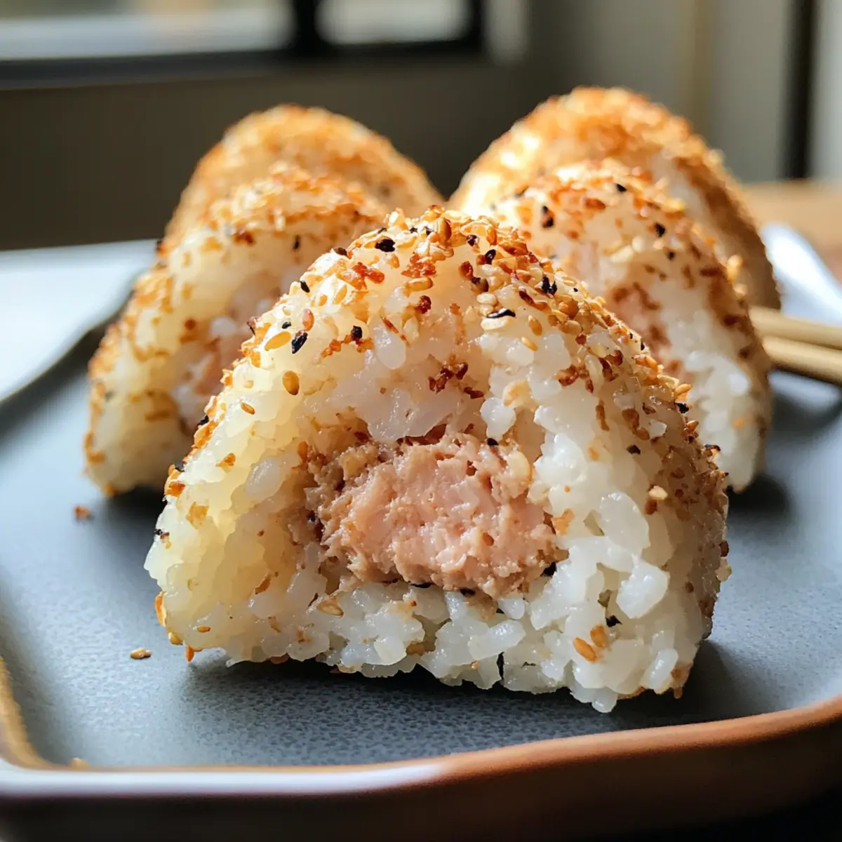 As I savored the last bite of creamy spiced tuna, I couldn’t help but think how simple joys often come packaged in unexpected ways. Enter Spicy Tuna Yaki Onigiri, the perfect fusion of crispy and soft that makes for an irresistible snack or lunch. These delightful Japanese rice balls are not only quick to whip up, but they also bring a modern twist to your meal rotation. With minimal ingredients, they offer a satisfying burst of flavor and texture that’ll tantalize your taste buds. Whether you’re packing them for a bento box or enjoying them straight from the skillet, these onigiri are sure to impress. Will they become your new favorite homemade snack? Let’s find out! Why love Yaki Onigiri? Crispy Texture: The golden-brown exterior of these Yaki Onigiri offers an irresistible crunch that perfectly contrasts with the soft, flavorful rice interior. Quick and Easy: Ready in just 20 minutes, this recipe is a lifesaver for busy days when you crave homemade goodness without the hassle. Flavor-Packed Filling: A creamy blend of tuna, Kewpie mayo, and Sriracha brings an explosion of taste, making each bite a delightful experience. Versatile Ingredients: Feel free to swap out the tuna for cooked salmon or even mashed avocado—these rice balls can be tailored to your taste! Perfect Snack or Meal: Whether as a snack, lunch, or appetizer, Yaki Onigiri are crowd-pleasers that impress at any gathering. For a complete meal, pair them with a warm bowl of miso soup or toss together a light salad with sesame dressing. If you’re on the hunt for other tasty ideas, check out our Ground Turkey Teriyaki for a quick dinner option! Yaki Onigiri Ingredients • Get ready to whip up these delightful rice balls with just a few simple ingredients! For the Filling Canned Tuna – Provides the primary protein source; be sure it’s well-drained for the best texture. Kewpie Mayo – Offers creaminess; you can swap this for regular mayo if desired. Sriracha – Adds heat and flavor; adjust to your taste or substitute with another hot sauce. For the Rice Cooked Sushi Rice or Japanese Short-Grain Rice – Forms the base of your Yaki Onigiri; its sticky nature is essential for shaping. Rice Vinegar (1 tbsp, optional) – Enhances flavor and helps the rice hold together; it’s optional but recommended for that authentic touch. Furikake (2 tbsp) – Adds umami flavor; if unavailable, sesame seeds make a great substitute. For Grilling Cooking Oil – Used for frying; a neutral oil like canola works best to achieve that crispy exterior. Light Soy Sauce (2 tbsp) – Provides a delicious savory element; for gluten-free options, tamari can be used. For Wrapping Nori Seaweed Strips (6) – Adds a delightful sea flavor and helps to hold your onigiri together; feel free to omit if you prefer. Step‑by‑Step Instructions for Spicy Tuna Yaki Onigiri Step 1: Prepare the Tuna Filling In a medium bowl, drain the canned tuna thoroughly and then add the Kewpie mayo and Sriracha. Mix the ingredients together until well combined, ensuring the tuna is coated with the creamy mixture. The filling should be smooth and slightly spicy, ready to surprise your taste buds when stuffed inside the onigiri. Step 2: Mix the Sushi Rice In another bowl, combine the cooked sushi rice with rice vinegar and furikake (if using) until the rice is evenly seasoned. This step should take about 1-2 minutes, and the rice should be slightly sticky, making it easier to mold later. If your rice is cold, consider briefly microwave it to warm it up for better handling. Step 3: Shape the Onigiri Utilizing an onigiri mold, fill it halfway with the seasoned rice, then create a small indentation in the center for the tuna filling. Spoon in a generous amount of the spicy tuna mixture before covering it with more rice. Press the mold firmly to shape the rice ball into a compact form. If you don’t have a mold, you can shape the onigiri by hand, forming a triangle with wet hands to prevent sticking. Step 4: Grill the Onigiri Heat a nonstick skillet over medium heat and add a suitable amount of cooking oil to prevent sticking. Once the oil is shimmering, carefully place the shaped onigiri in the skillet, allowing them to grill for about 3-5 minutes per side. Keep an eye on them, ensuring they develop a lovely golden-brown crust that adds both texture and flavor to your Spicy Tuna Yaki Onigiri. Step 5: Brush with Soy Sauce After achieving a crispy exterior, brush the grilled onigiri with light soy sauce while still in the skillet. This will enhance their savory flavor and give them an additional few minutes on the heat to soak in the soy sauce goodness. Flip the onigiri again and grill for another 1-2 minutes until beautifully caramelized. Step 6: Serve the Yaki Onigiri Once grilled to perfection, remove the onigiri from the skillet and wrap each piece with a strip of nori, if desired. This adds a delightful contrast in flavor. Serve your delicious Spicy Tuna Yaki Onigiri warm, and consider pairing them with a light salad or a warm bowl of miso soup for a satisfying meal. Expert Tips for Yaki Onigiri Sticky Rice Rule: Ensure your sushi rice is sticky enough; too dry, and it won’t hold its shape. A quick warm-up helps if using leftovers. Grilling Space: Don’t overcrowd the skillet while grilling the onigiri. Allowing space ensures even cooking and achieves that perfect crispy texture. Perfect Fillings: Feel free to experiment with fillings! If you don’t have canned tuna, consider using shredded chicken or even mashed avocado for a vegetarian version. Watch the Heat: Cooking on medium heat is key. Too high, and the outside burns before the inside is warm; too low, and it won’t crisp up properly. Soy Sauce Glaze: Brush the soy sauce on during the last few minutes of grilling for an added layer of flavor that brings out the savoriness of the Yaki Onigiri. What to Serve with Spicy Tuna Yaki Onigiri? Indulging in these crispy rice balls opens the door to a world o